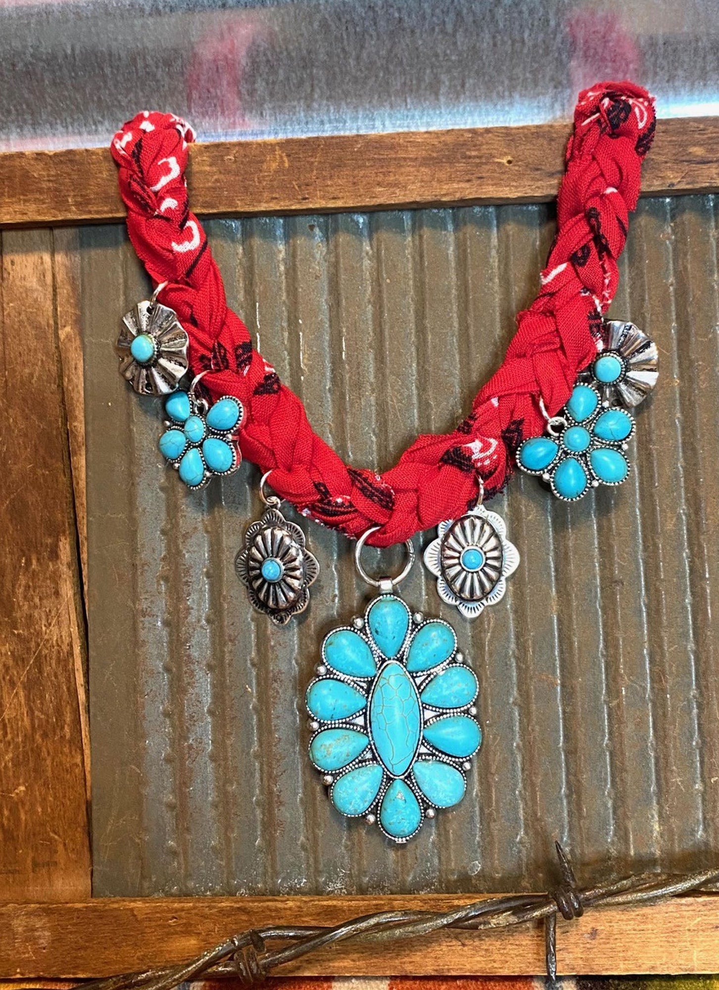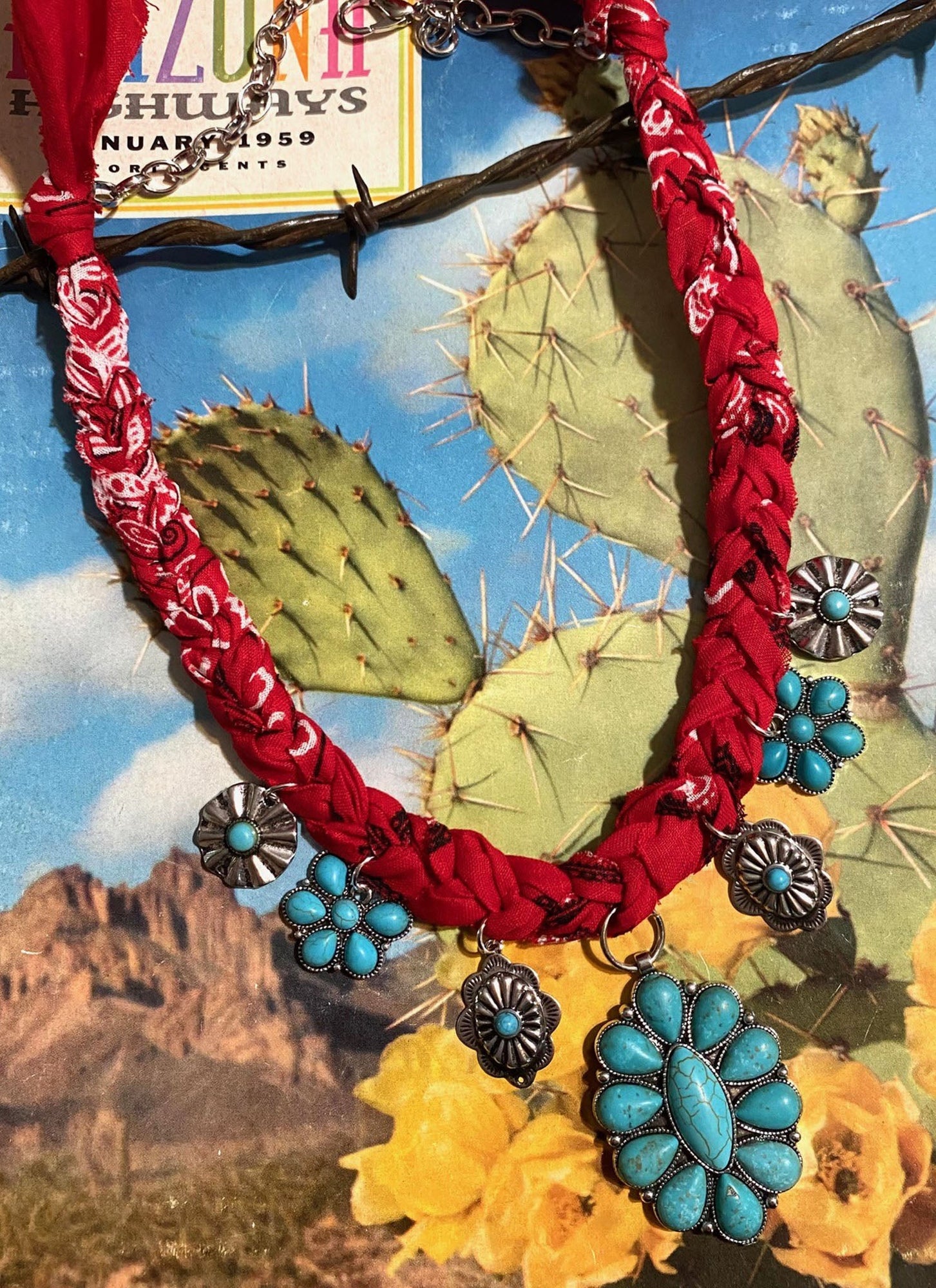 Introducing the latest craze of the season: the Cowgirl Bandana Charm Necklace. But rest assured, our unique necklace is meticulously crafted with charming beads and exclusive charms for a one-of-a-kind accessory.