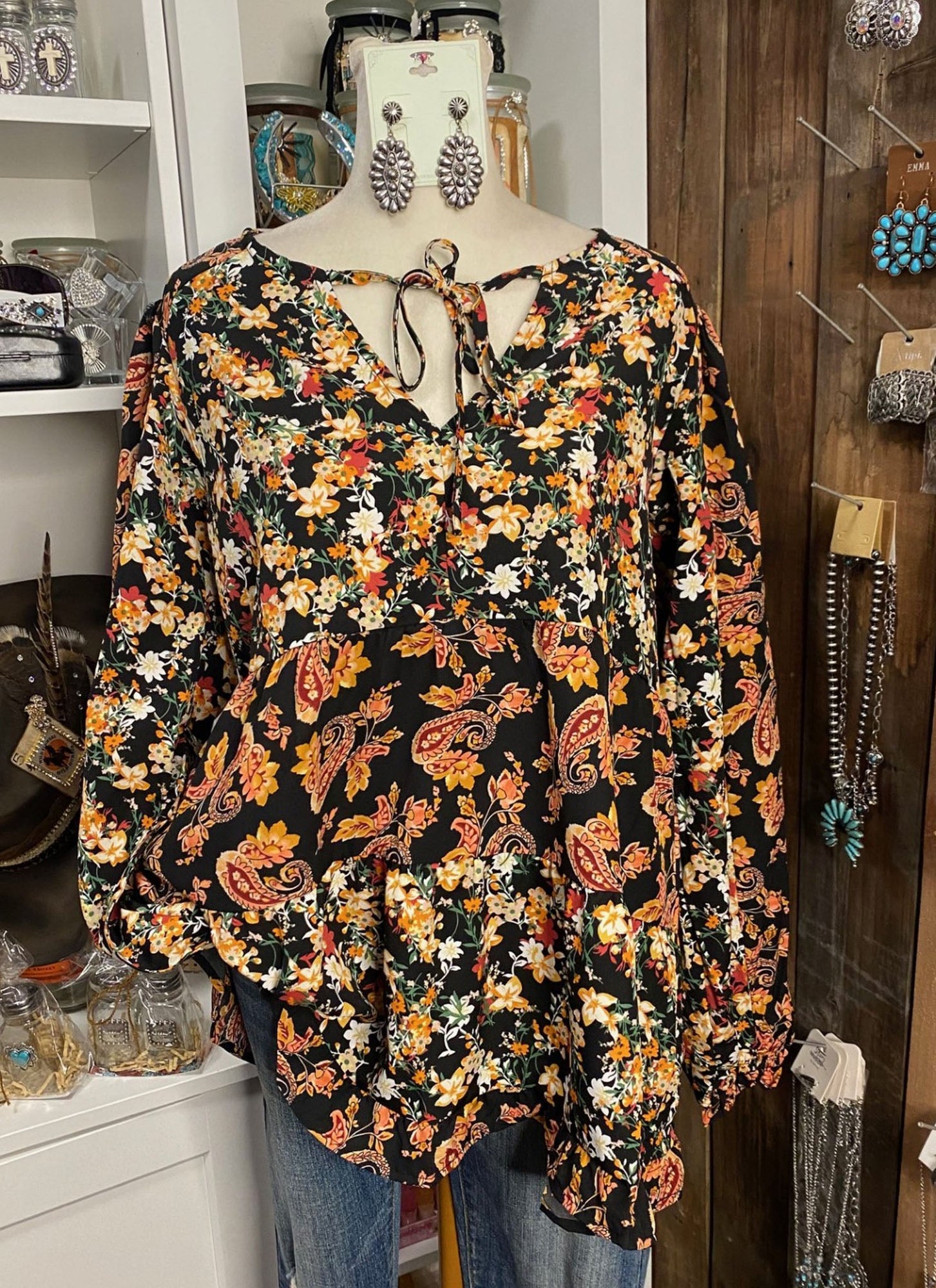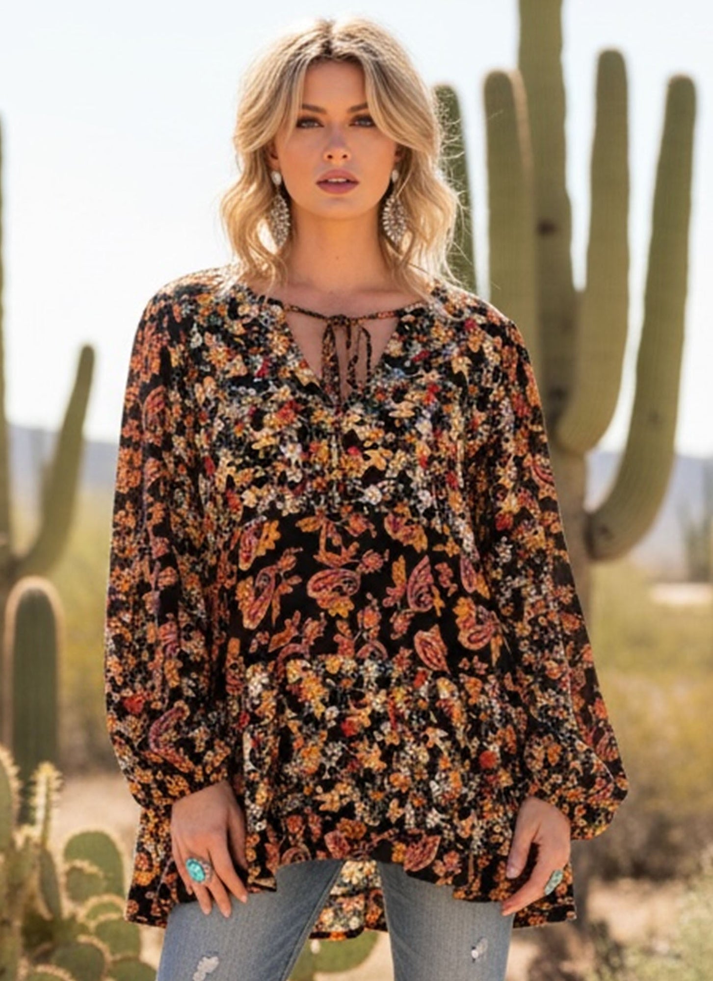 Paisley Free Flowing Cowgirl Top With Tie Detail