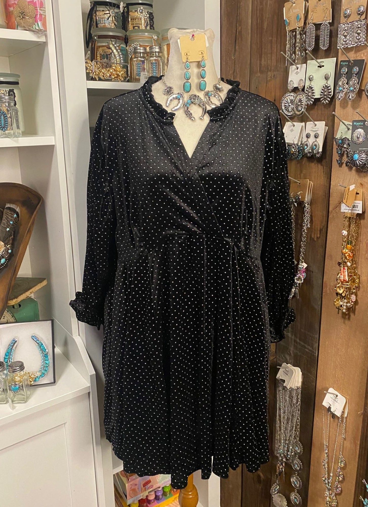 Elevate your seasonal style with this luxurious velveteen dress, featuring eye-catching Metallic mirror embellishments that capture light beautifully. The relaxed, flowing silhouette offers effortless elegance for holiday gatherings and special occasions. A sophisticated choice for those seeking understated glamour with contemporary flair.